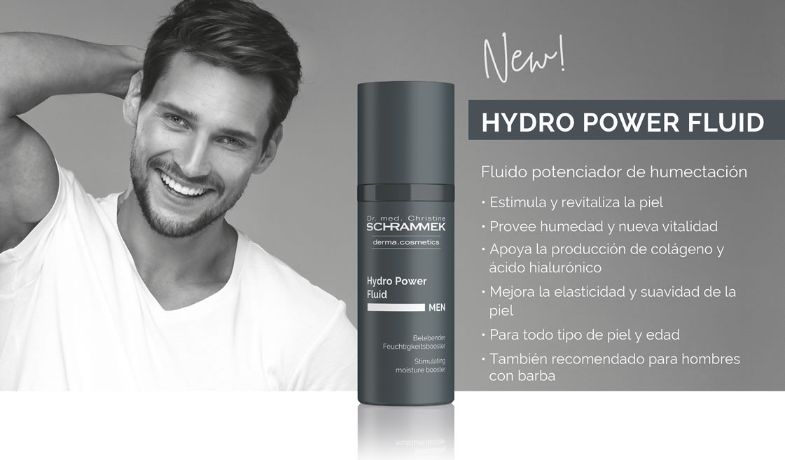 Hydro Power Fluid es sinónimo de poder concentrado en un solo producto. Combina todo lo que el "hombre" necesita para mantener la piel del rostro... de manera fácil y eficiente. El efecto del hialurón triple proporciona humedad intensa sin dejar sensación de grastitud.